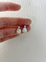 Selected natural Keshi pearls are paired with round-cut cubic zirconia accents. The clean geometric setting creates a refined balance with the pearls’ organic, free-form silhouettes, resulting in a soft yet layered pearlescent glow. Lightweight and close-fitting to the ear, these earrings are ideal for everyday commuting or dates, offering a quiet elegance with understated sophistication.