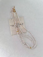 Selected natural freshwater pearls with a soft, delicate glow in a subtle fairy pink tone. The three-layer design adds elegant dimension, while the refined gold clasp makes it gentle and versatile. This piece brings a romantic, elevated touch to your date nights, vacations, or evening looks.